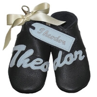 Krabbelschuhe mit Namen in dunkelblau/hellblau